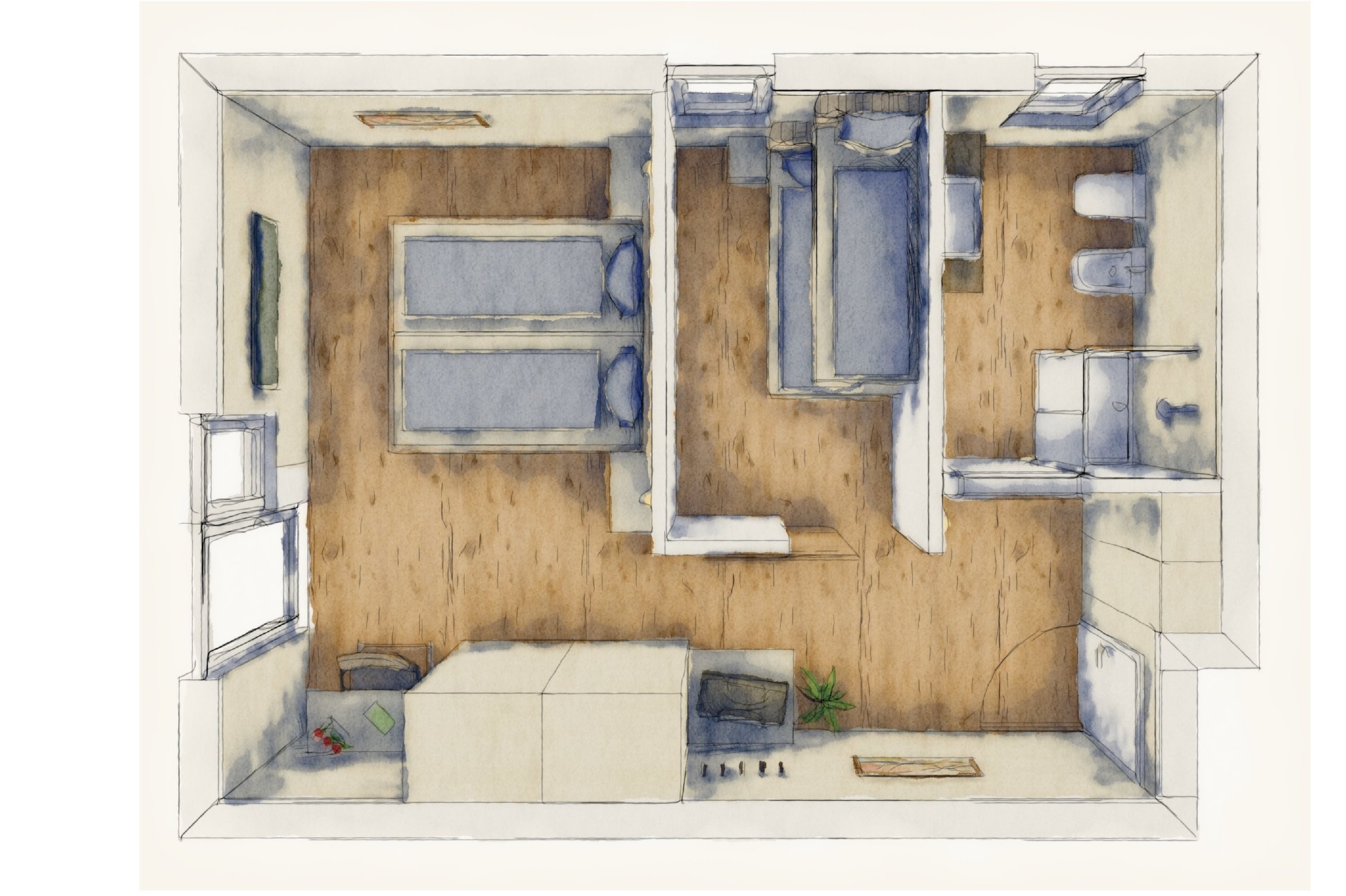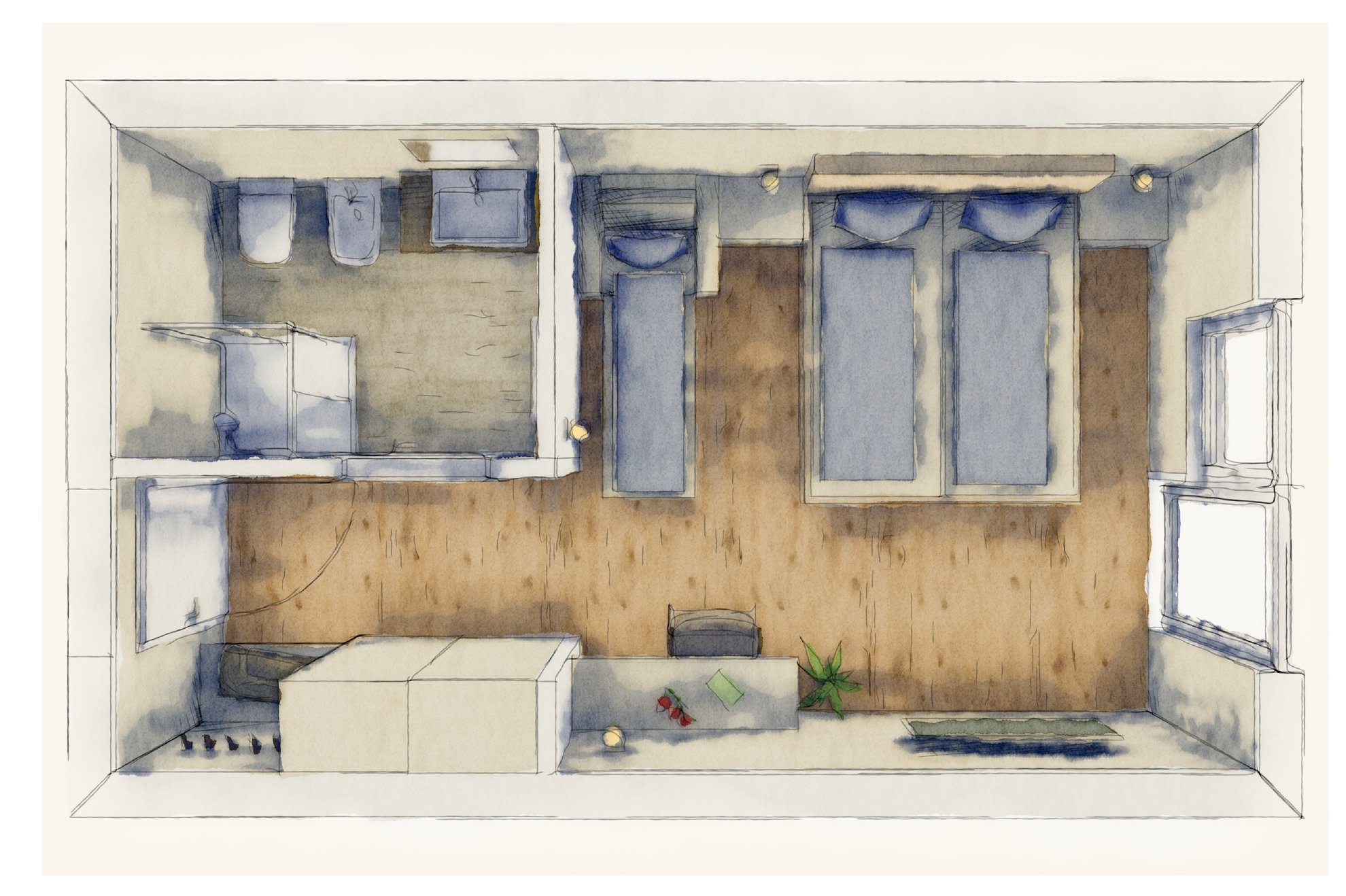 Our Double rooms for 2-3 people feature an abundance of local wood, large balconies with panoramic views and luxurious bathrooms.